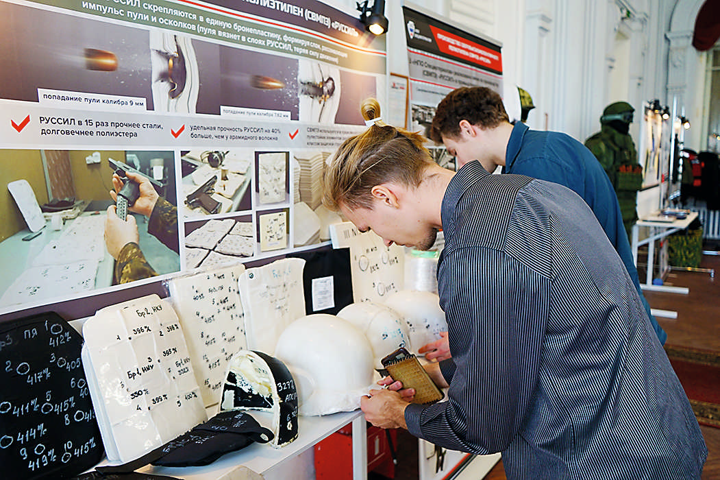 четвертый год работают в режиме постоянного трудового подвига, удовлетворяя и даже упреждая нужды фронта. В условиях международных санкций против РФ в области передачи передовых технологий СВО дала мощный толчок к интенсификации собственных изысканий и внедрению их результатов в производство. Это хорошо видно на примере российского лидера в области выпуска средств индивидуальной и коллективной защиты АО «НПО Спецматериалов». Его генеральный директор – генеральный конструктор академик РАРАН М.В. Сильников в своем выступлении обрисовал ситуацию 2022 года: нужно было экипировать десятки тысяч бойцов, а средств индивидуальной бронезащиты (СИБ) катастрофически не хватало. Наращивать производство мешал дефицит защитных материалов, особенно так называемой мягкой брони – арамидных тканей (в России их выпускали в очень ограниченном количестве) и высокомолекулярного полиэтилена (отечественные его аналоги отсутствовали, а китайская продукция не удовлетворяла по качеству). И в НПО Спецматериалов решились самостоятельно восполнить этот пробел, создав с нуля или усовершенствовав многие технологии. Начать с арамидной ткани: для обеспечения нужного уровня защиты требуется множество ее слоев, что делает конечное изделие громоздким и тяжелым, ограничивая подвижность человека. В НИИ Спецматериалов при объединении была разработана технология, основанная на пропитке баллистических тканей жидкими химическими составами различных рецептур: они вступают в слабые химические связи с полимерными цепями волокон ткани, склеивая их между собой, и в итоге прочность материала повышается при сохранении его гибкости. В 2023 году в АО «НПО Спецматериалов» было запущено первое и единственное в России производство нетканого полотна из нитей сверхвысокомолекулярного полиэтилена (СВМПЭ) под торговой маркой «РУССИЛ». Прочностные характеристики СВМПЭ намного выше, чем у арамидных тканей, а структура – более однородна и поэтому способна выдерживать многократные пулевые воздействия. Это делает его наиболее предпочтительным материалом для создания тыльных слоев композитных защитных структур при изготовлении гибких защитных элементов бронежилетов, СИБ конечностей, противоосколочных накидок, оболочек бронешлемов и др. изделий. Жесткие и гибкие защитные элементы из «РУССИЛа» используются для защиты транспортных средств на суше, воде и в воздухе.